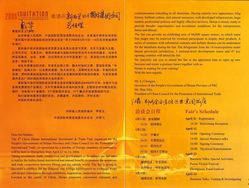 MH-Group invitation to China , Henan Trade Show 2006 |