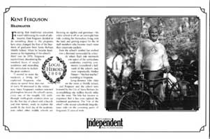 HONORS and AWARDS: As a classroom teacher Kent was the designer of The Novus Project, an instructional classroom program which was featured by the United Nations as one of forty exemplary programs for "Global Education at the Grassroots." Kent was honored by the Mayor and by the City Council of Santa Barbara in 1998 for the successful completion of 1,000,000 miles of safe cycling in nine western states with children over the past two decades. In 2000 the local newspaper officially named Kent as a local hero because of his work with young people. |